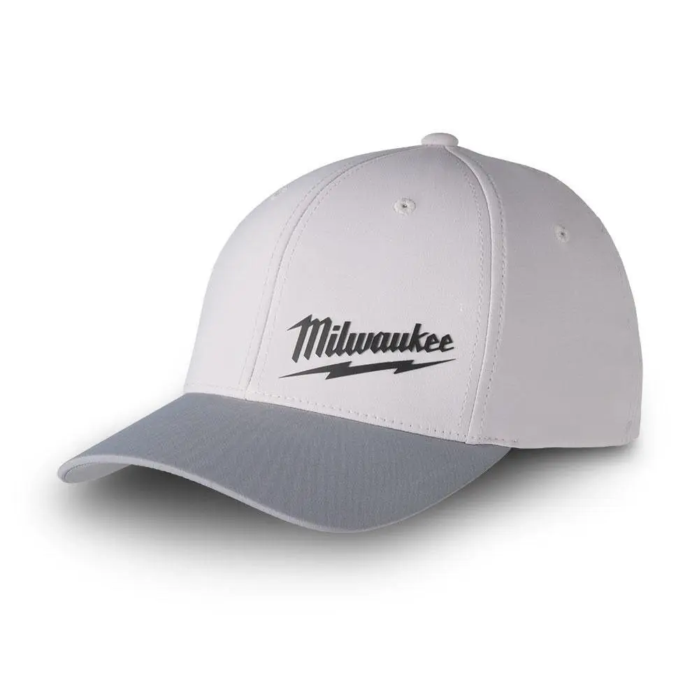 Originál Milwaukee. Šedo/stříbrná baseballová čepice s kšiltem a černým logem Milwaukee. Celouzavřená konstrukce.