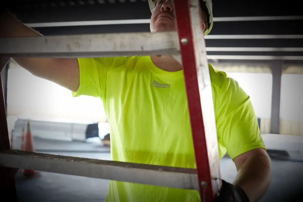 Pracovné tričko Milwaukee Workskin WWSSY s vysokou viditeľnosťou. Krátky rukáv - XXL Vysokokvalitné, ľahké pracovné košele WORKSKIN™ s dlhým rukávom v reflexnej farbe s vysokou viditeľnosťou. Ideálna výbava do teplého počasia. Rýchlo schnú, udržujú nositeľa v chlade a chránia pred slnkom. - Základná vrstva WORKSKIN™ Vysokokvalitné tkaniny COOLCORE® využívajú patentovanú trojitú štruktúru priadze, ktorá odvádza vlhkosť od tela a udržiava odev až o 30 % chladnejší pri práci v horúčavách. - Zóny rýchleho odvodu vlhkosti na chrbte a v podpazuší urýchľujú schnutie v oblastiach intenzívneho potenia - Odvod vlhkosti bez chemických látok umožňuje rýchlejšie schnutie trička, čím sa znižuje potenie a znižuje účinnosť prania - UV ochrana chráni pokožku pred slnečnými lúčmi - Trvanlivá tkanina odolná voči žmolkovaniu predlžuje životnosť výrobku - Predĺžená spodná časť chrbta poskytuje dodatočnú ochranu pri práci s rukami nad hlavou - Bezšvové ramená znižujú zaťaženie od popruhov a postrojov