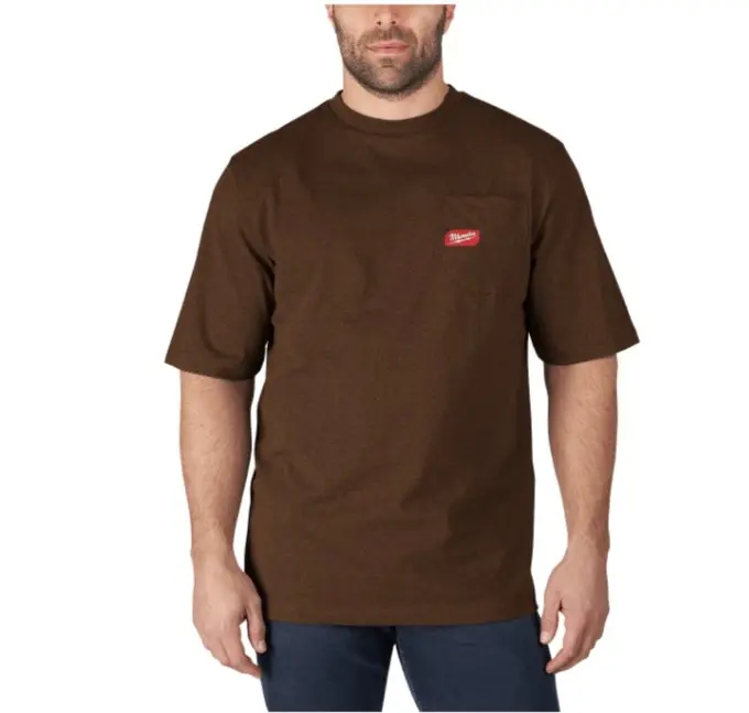 Pracovní tričko Milwaukee WT SS BR s krátkým rukávem v hnědé barvě je vyrobeno z bavlny, má klasický střih a je vhodné pro každodenní nošení. Materiál zajišťuje příjemný pocit při práci i volném čase.