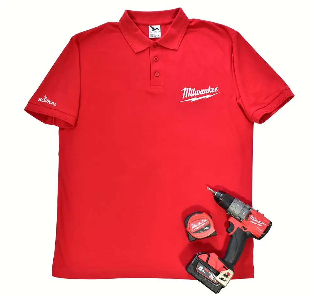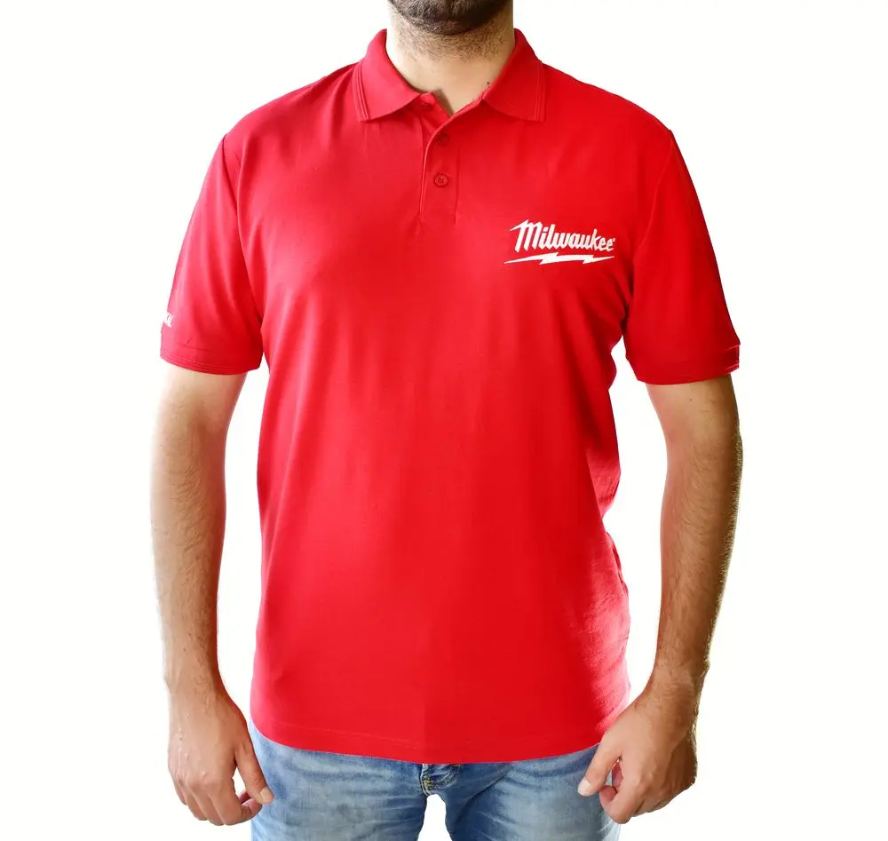 Tričko s límečkem Milwaukee ve velikosti XL je vyrobeno z bavlny, má krátký rukáv a decentní logo na hrudi. Vhodné pro běžné nošení i práci.