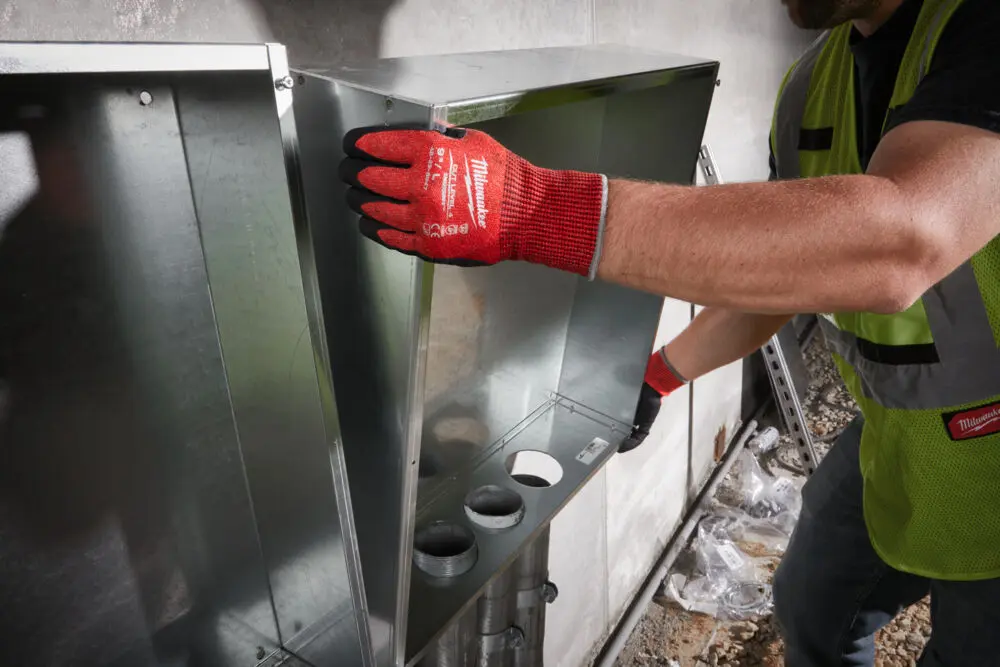 Lehké, pohodlné a vysoce prodyšné univerzální pracovní rukavice Milwaukee, velikost M, ochrana stupně D, prodyšný materiál, nitrilová vrstva, omyvatelné, ovládání dotykových zařízení bez sundání rukavic.