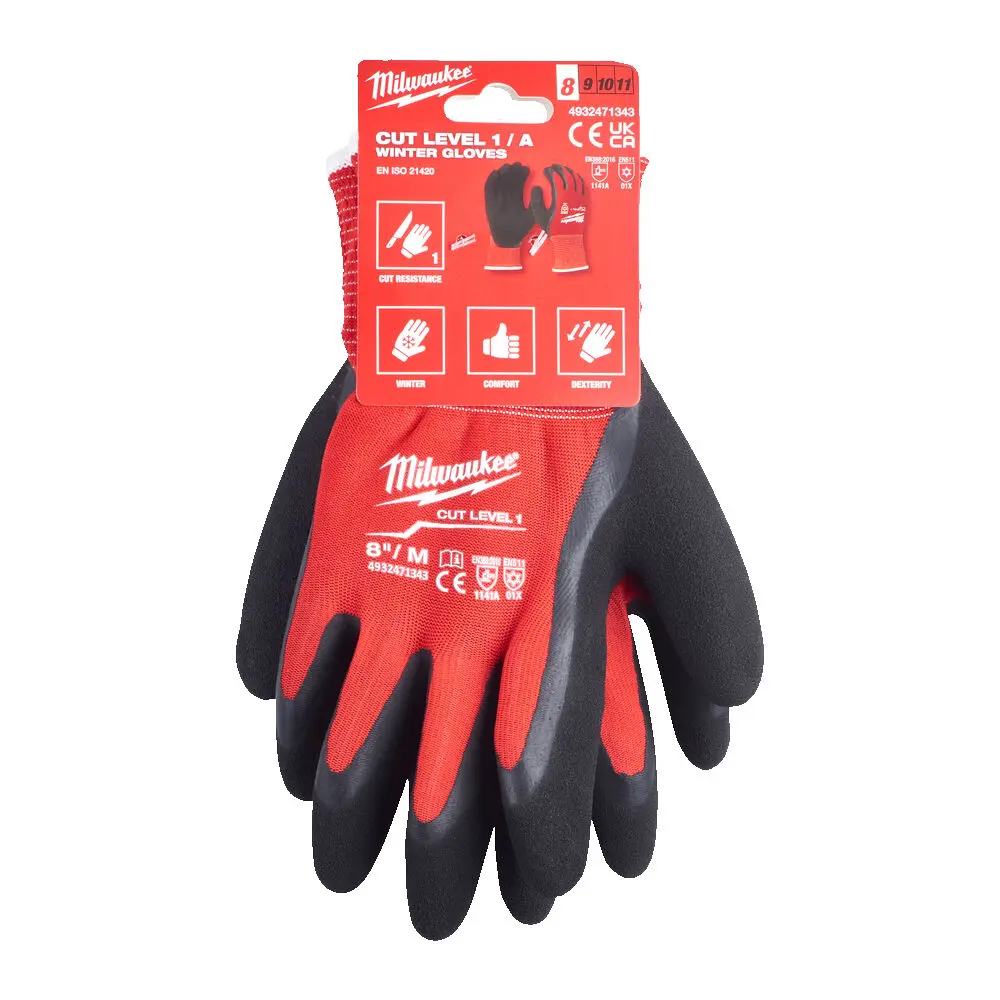 Zimné pracovné rukavice Milwaukee WINTER, ochrana proti prerezaniu A, veľkosť 8 (M), 1 pár, 4932471343