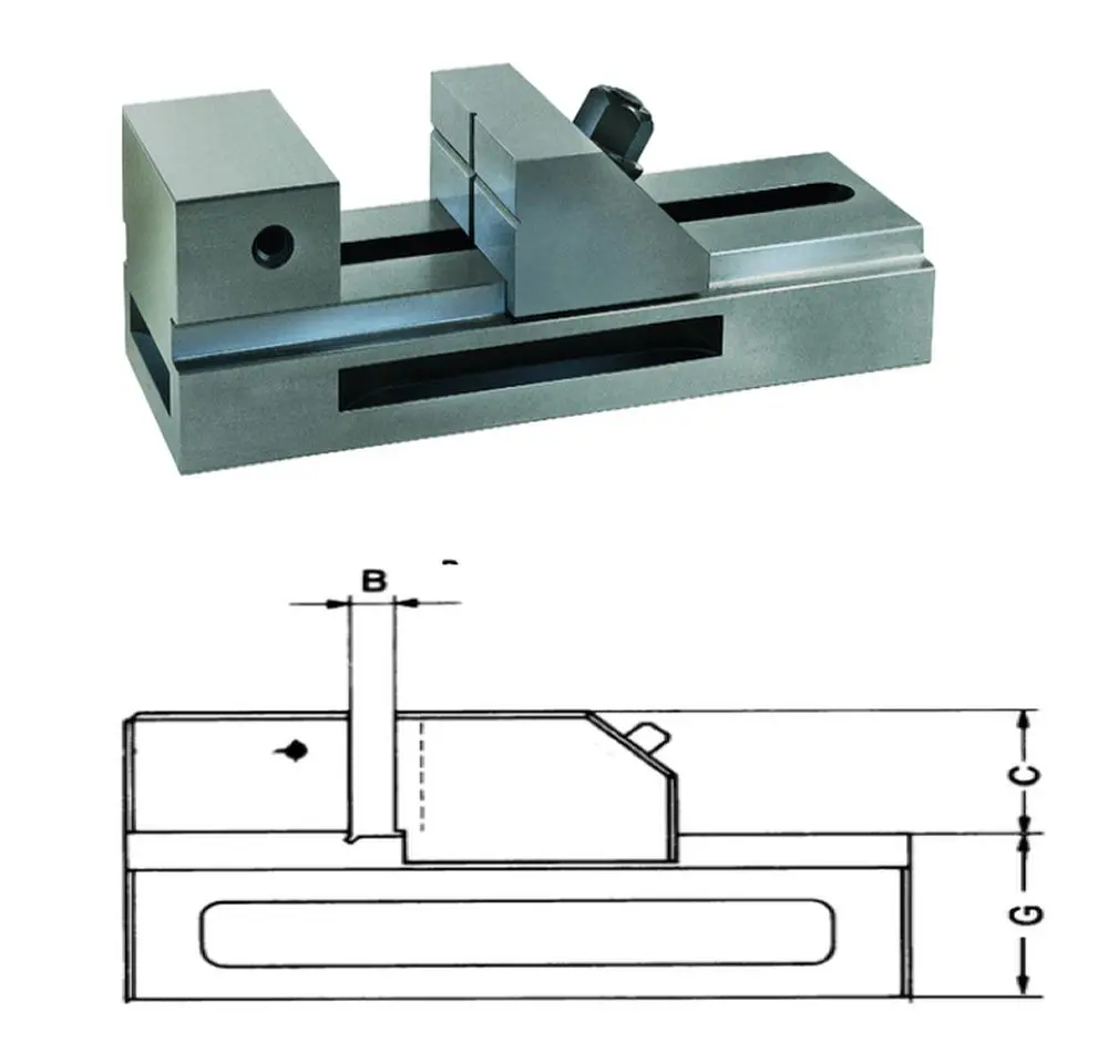 Presný modulárny zverák bez vretena, vhodný pre sériovú aj kusovú výrobu na brúskach, CNC frézkach a obrábacích centrách, a určený pre presné merania a obrábanie so zaistenou rovnobežnosti a kolmosti brúsených plôch pre upnutie materiálu