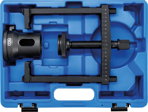 Speciální sada nářadí BGS106890 umožňuje snadnou demontáž a montáž silentbloků podélných kyvných ramen u vozů Honda bez nutnosti demontáže celého ramene. Robustní konstrukce zajišťuje dlouhou životnost při opakovaném použití.