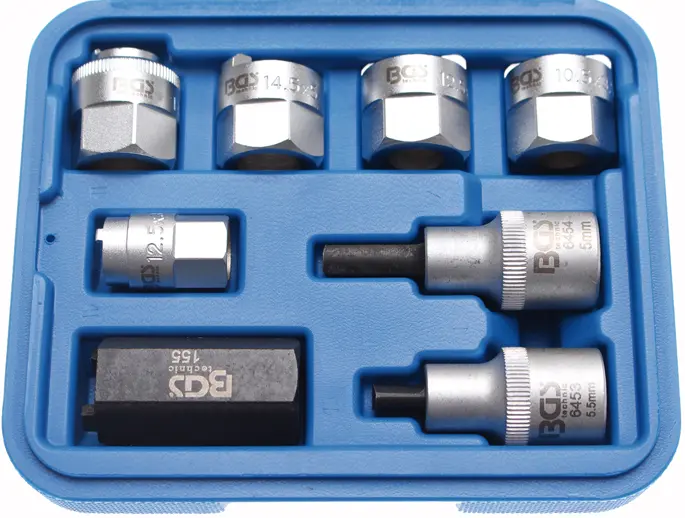 Sada nástrčných hlavic BGS106457 obsahuje 8 dílů určených pro montáž tlumičů, které umožňují efektivní práci s různými typy automobilových tlumičů. Vhodné pro profesionální i domácí použití díky kompatibilitě s běžnými ráčnami.