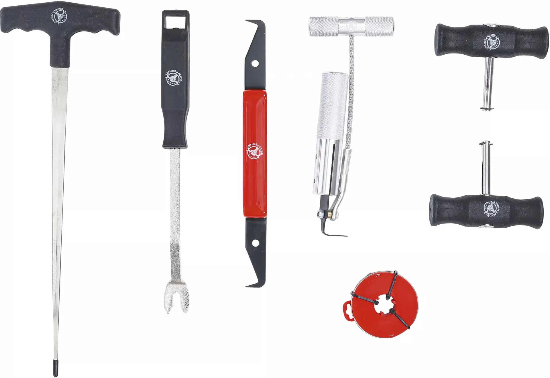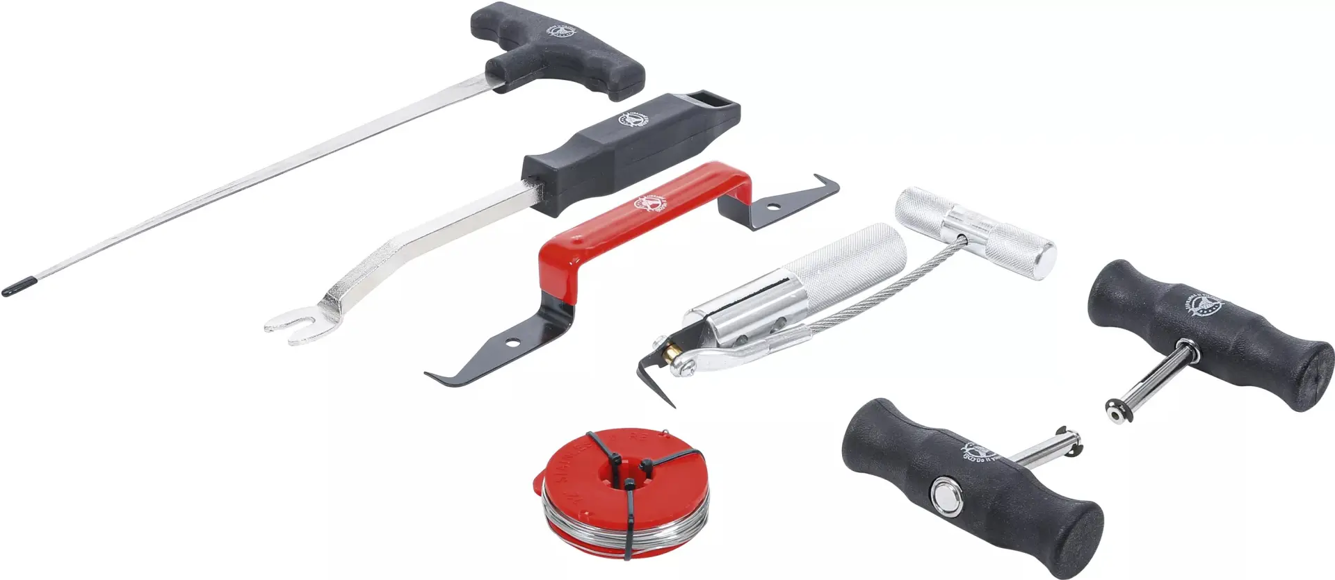 Sada Kraftmann BGS1060300 obsahuje 7 nástrojů určených pro demontáž čelních autoskel, včetně drátu, rukojetí a speciálních páčidel pro přesnou práci. Vše je uloženo v praktickém pouzdře, které usnadňuje přenášení i skladování.