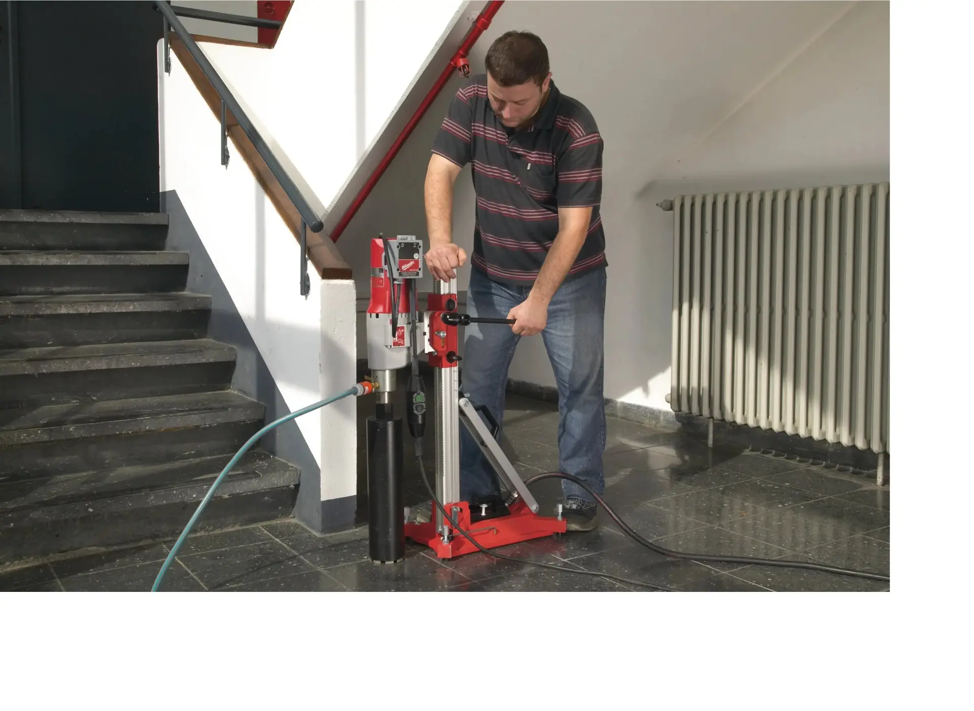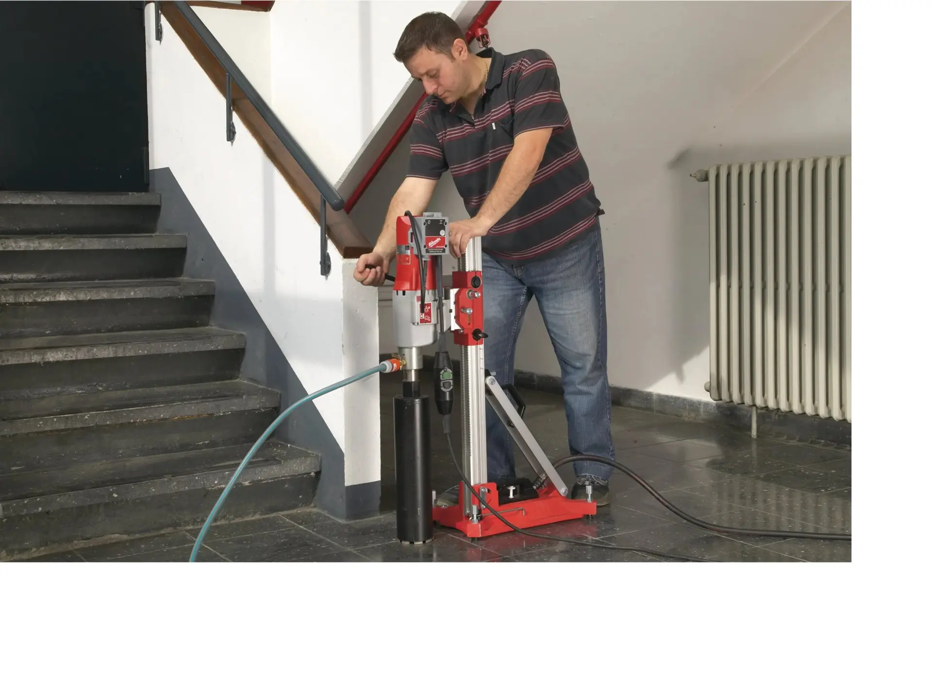 - Výška stĺpca [mm]: 834 - Rozmery základne [mm]: 276 x 467 - Zdvih [mm]: max. 520 - Nastaviteľný uhol [°]: 0 ÷ 45 - Priemer vŕtania s korunkou [mm]: max. 250 - Hmotnosť [kg]: 10 - Ľahký hliníkový stojan na vŕtanie - Príklep (0 - 45°) - Ukazovateľ uhla a hĺbky vŕtania - Doska na rýchle pripojenie motora - Integrovaný vysávací nadstavec. Rozmery základne (použiteľné s vysávačom a bez neho) - Jemné nastavenie rýchlosti posuvu - Vertikálna a horizontálna vodováha - Zariadenie na centrovanie vyvŕtaného otvoru - Nivelačné skrutky - Rukoväť možno upevniť na každej strane stojana - Štandardné vybavenie: šesťhranný kľúč 3/16", šesťhranný kľúč 6 mm, uťahovák 17 x 19, rýchlospojka motorovej dosky, 4 skrutky M 8 x 25 mm, centrovacie zariadenie, gumová objímka na použitie vákua - Dodáva sa bez kufra