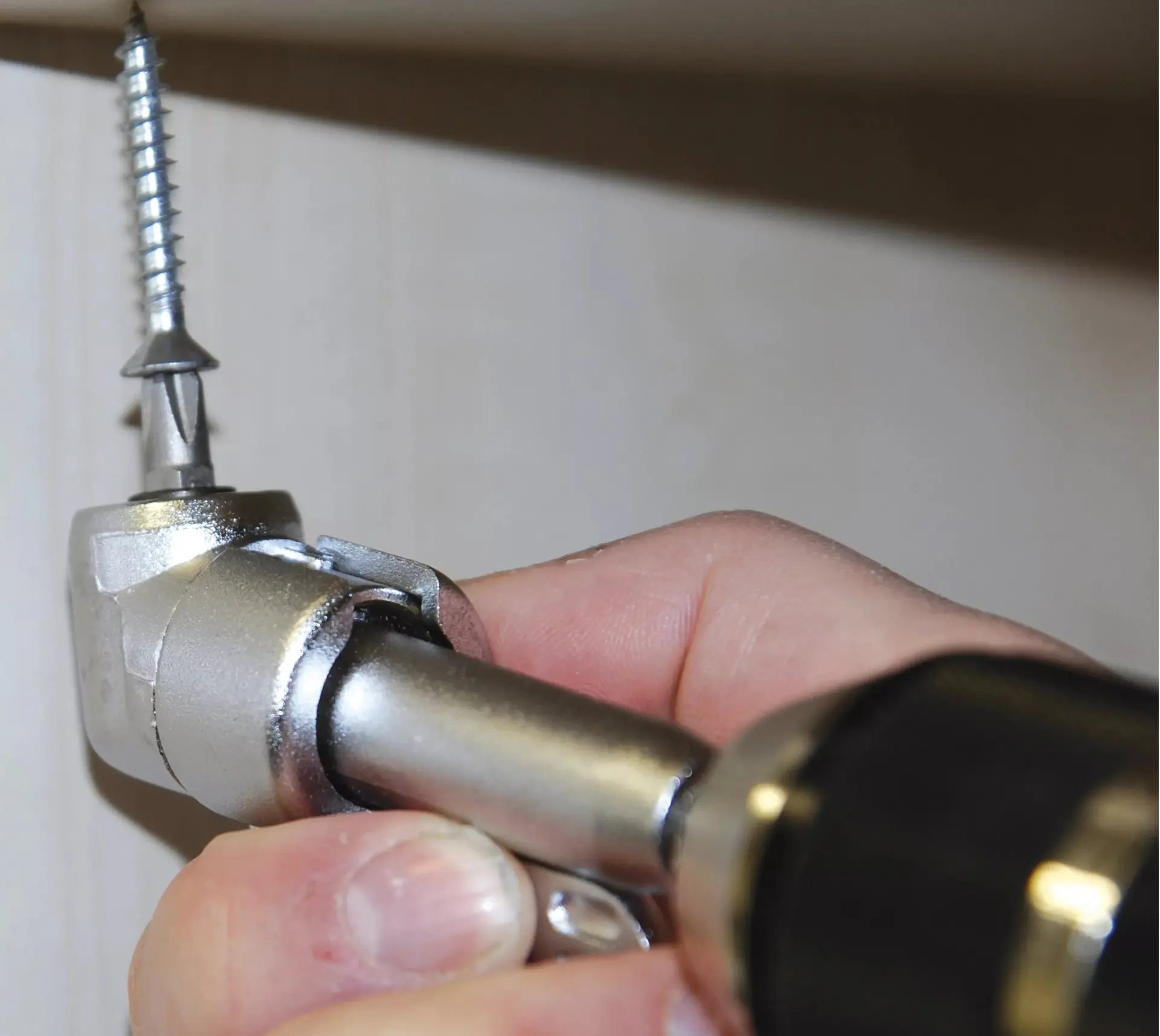 • Nástavec pre vŕtačku pre ľahké skrutkovanie a vŕtanie pod uhlom