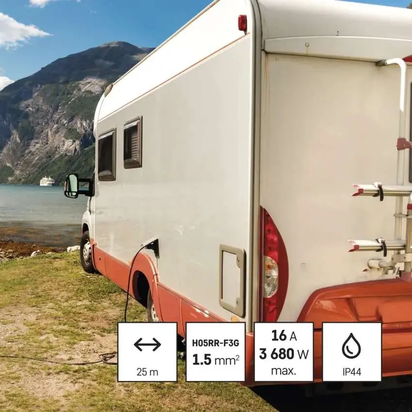 Predlžovací kábel na bubne EMOS, s prierezom vodiča 1,5 mm2 a dĺžke 25 m, je celý vyrobený z kvalitných materiálov a obstojí aj pri práci vo vonkajšom prostredí