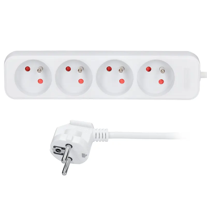 SOLIGHT - predlžovací prívod, 4 zásuvky, biely, 1,5m
