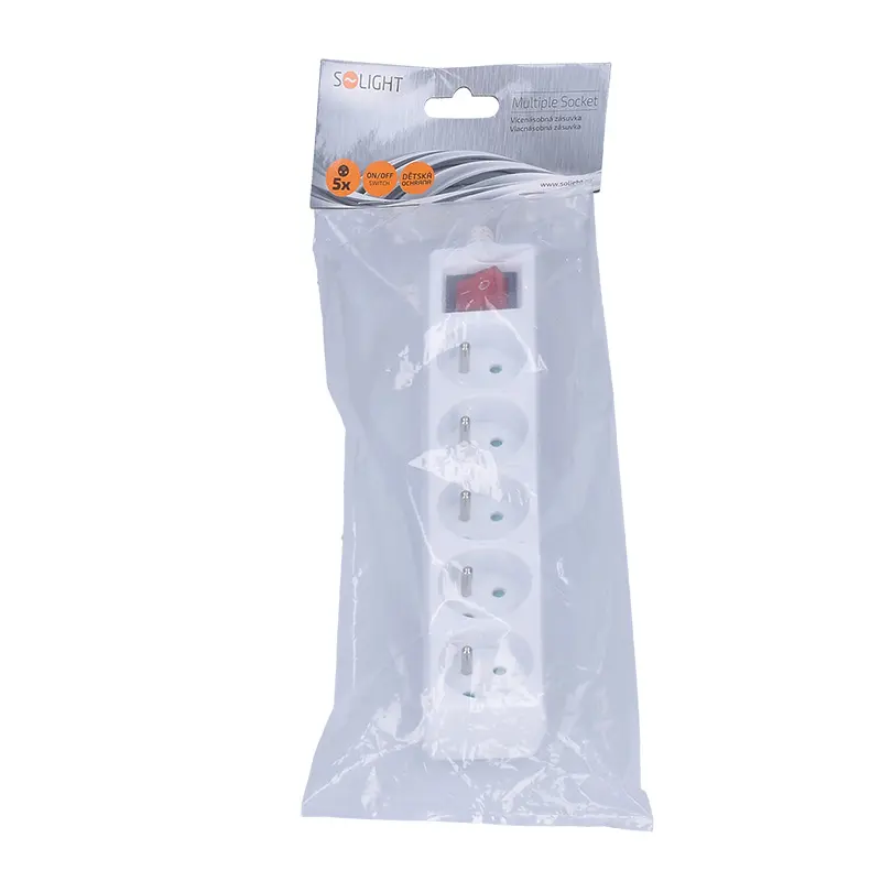 SOLIGHT - viacnásobná zásuvka, 5 zásuviek, vypínač