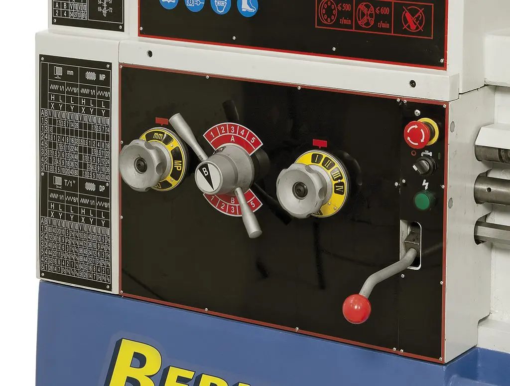 - Regulácia otáčok ( plynulá), umiestnená na kryte vreteníka, umožňuje prispôsobiťotáčky a posuv pre ideálne rezné podmienky