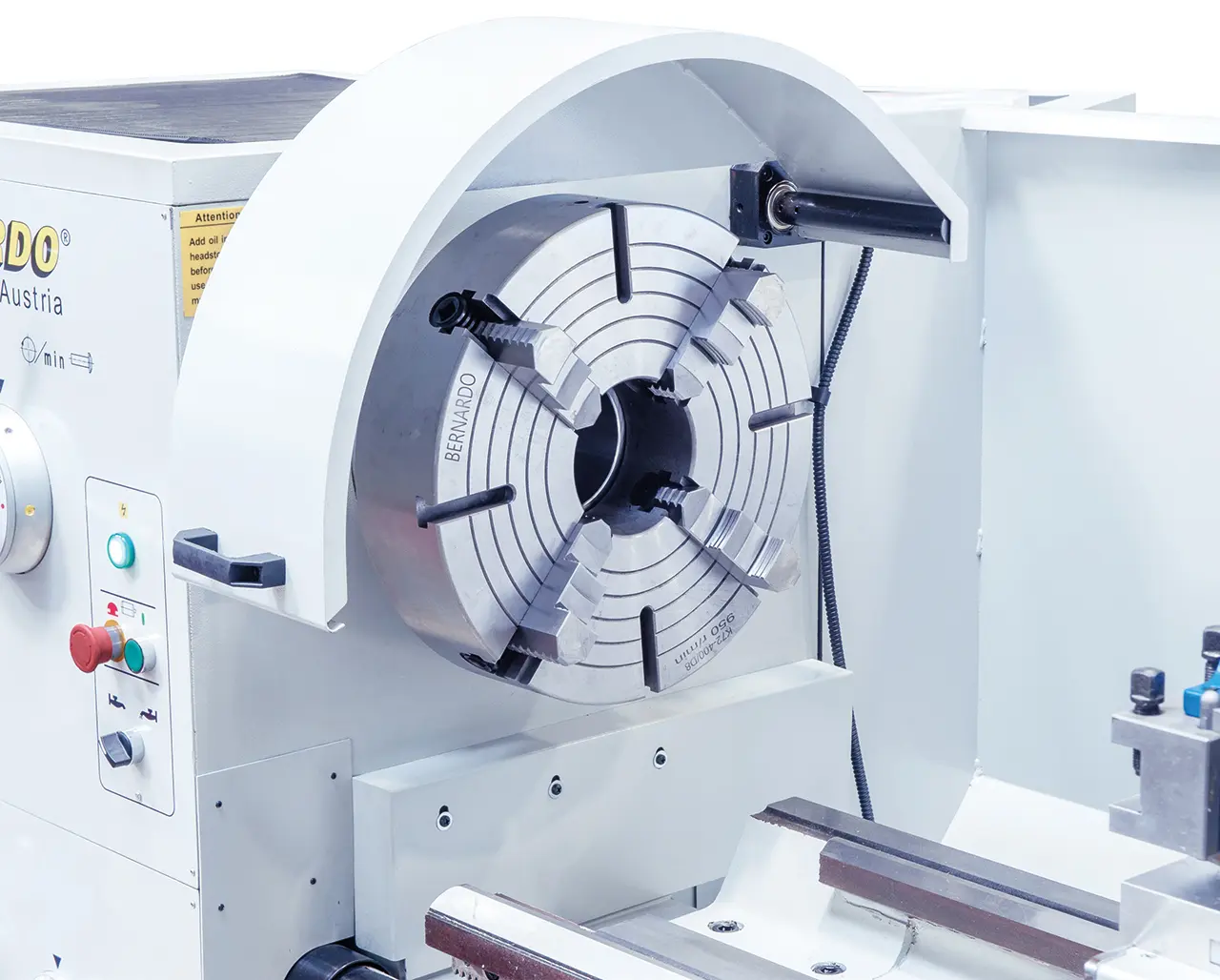 Už v základnej výbave je všetko dôležité príslušenstvo (3-čeľusťové skľučovadlo, opierka, radenie, ...), čo znamená, že tento stroj je univerzálne použiteľný