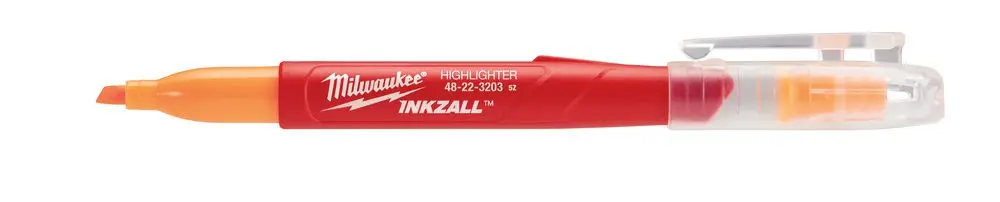 Sada farebných zvýrazňovačov MILWAUKEE INKZALL™ Sada profesionálnych farebných zvýrazňovačov na použitie na stavenisku, ktoré si zachovávajú funkčnosť aj pri náročnom používaní. - Hrot zvýrazňovača odolný voči opotrebovaniu - hrot zvýrazňovača je