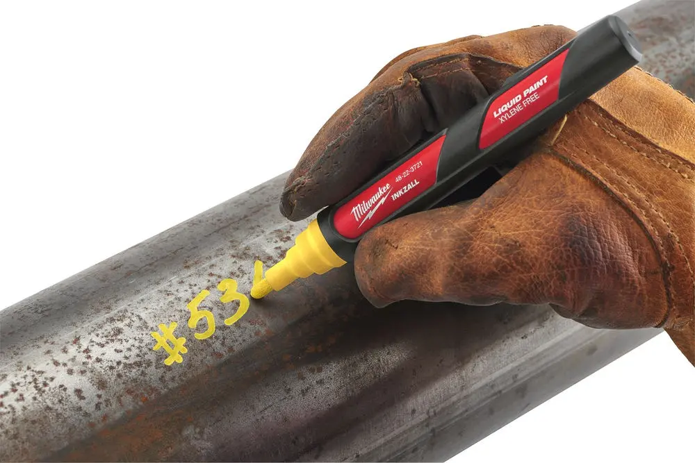 Stavebná značka MILWAUKEE INKZALL™. Žltá Profesionálny popisovač vhodný aj na stavbu. Odolný popisovač vhodný na všetky typy povrchov. - Odolný akrylový hrot pre najnáročnejšie podmienky prostredia: teplota povrchu od -10° do +145 °C. - Farba neobsahuje xylén - Dôležité: Fixku s uzáverom pretrepte. Odstráňte uzáver a jemne pumpujte hore a dole, kým atrament nevtečie do hrotu...- Značí dobre aj na tmavé povrchy, kde by tradičné popisovače neboli dobre viditeľné - Možno použiť na drsné, mastné a znečistené povrchy - Hrot popisovača odolný voči opotrebovaniu - Akrylový hrot je ideálny na drsné povrchy, ako sú OSB dosky a betón, čierne rúry, hliník, PVC, oceľ a nehrdzavejúca oceľ, guma a pneumatiky - Rýchle schnutie - zaschne do 10 sekúnd - Permanentný popisovač. Značenie s trvanlivosťou až 6 mesiacov - Značenie (nanesená farba) je po zaschnutí odolné voči vode a UV žiareniu. Zaručuje dlhodobú viditeľnosť a čitateľnosť - Kovové telo konštrukcie pre trvanlivosť a