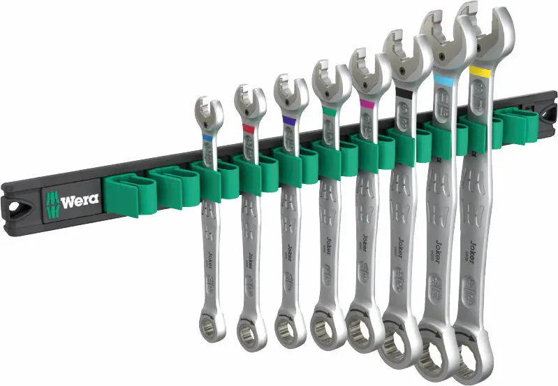 Magnetická lišta s očkoplochými račňovými kľúčmi Wera Joker