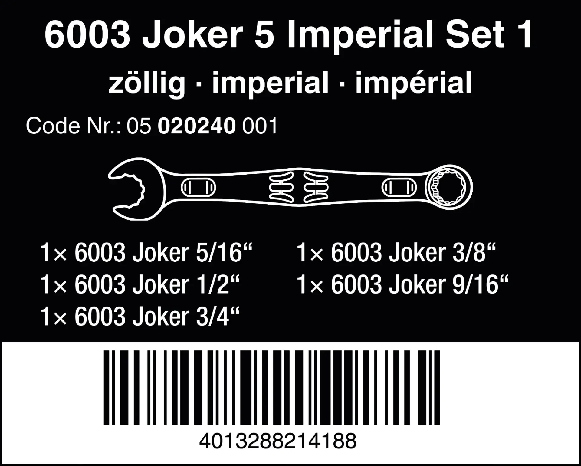 Wera 020240 Kombinované kľúče 5/16 ÷ 3/4", palcové 6003 Joker 5 Imperial Set 1 (Sada 5 dielov) (W05020240001)