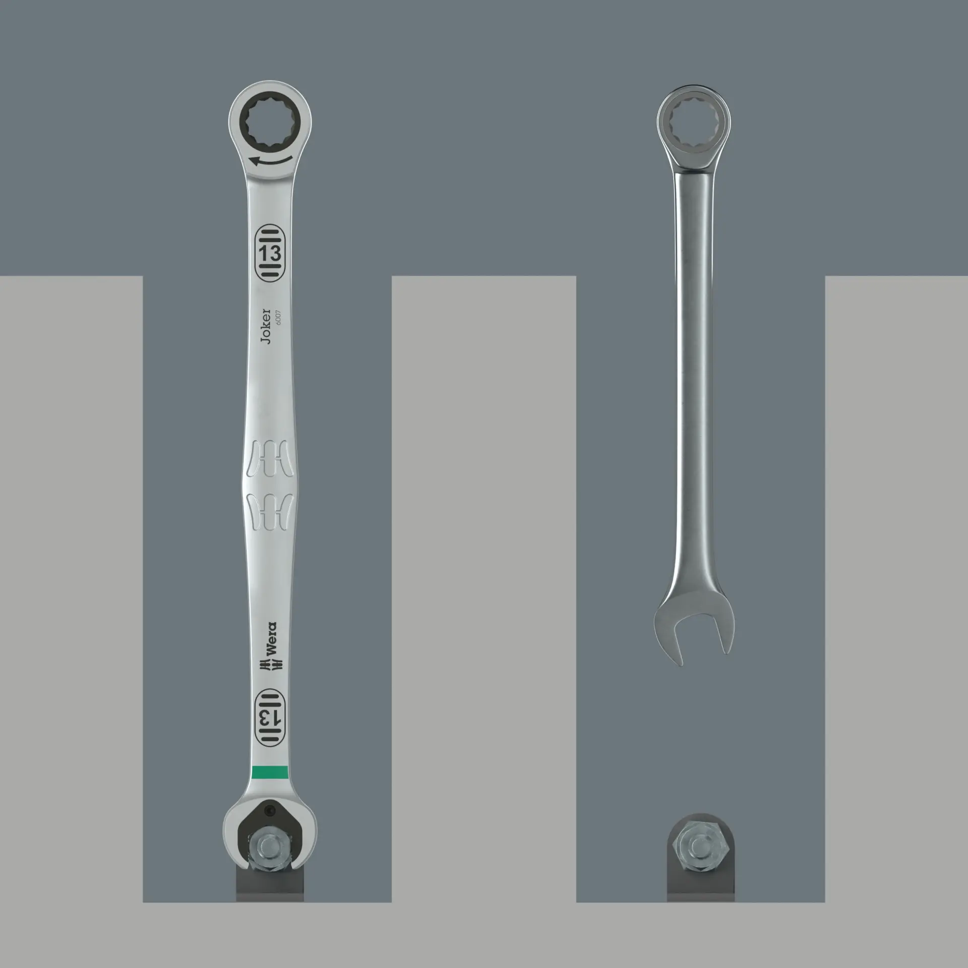 • Celosvetovo unikátna kombinácia otvoreného kľúča Wera a očkového račňového mechanizmu v dlhom prevedení