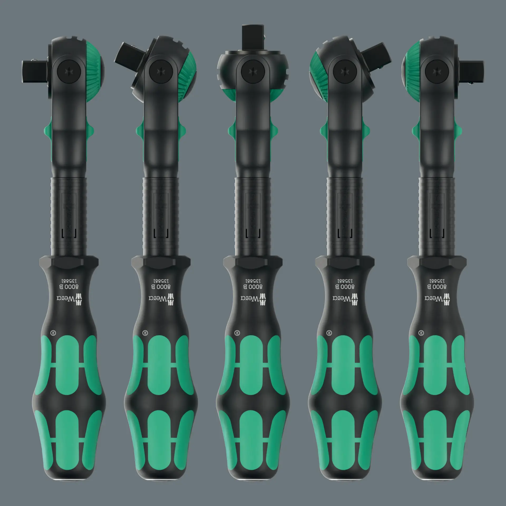 Definované upevnenie pri 0°, 15° a 90° doľava a doprava zaručuje bezpečnú prácu bez zošmyknutia hlavy račne