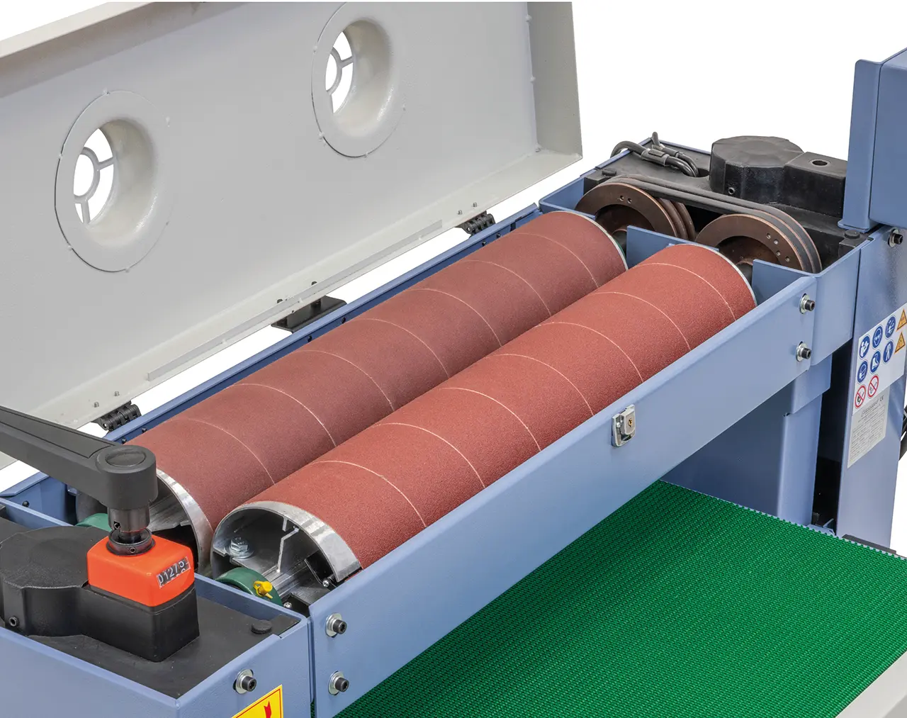 Profesionálna valcová brúska Bernardo s plynule nastaviteľnou rýchlosťou posuvu. Vďaka dvom brúsnym bubnom je možné vykonávať hrubé a jemné brúsenie v jednom priechode s použitím brúsnych pásov s rôznou zrnitosťou. Robustný stojan stroja zaisťuje vysokú stabilitu a tým aj presné výsledky brúsenie