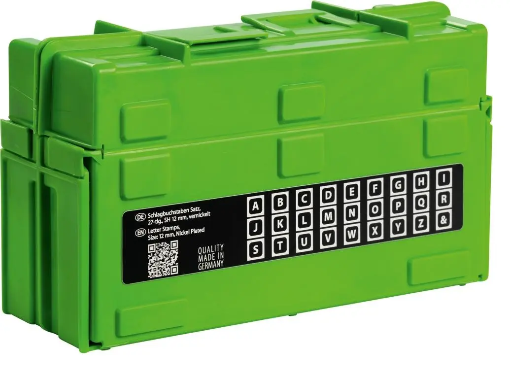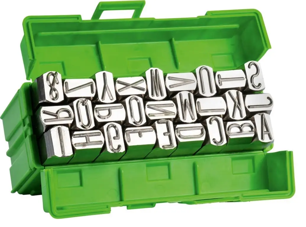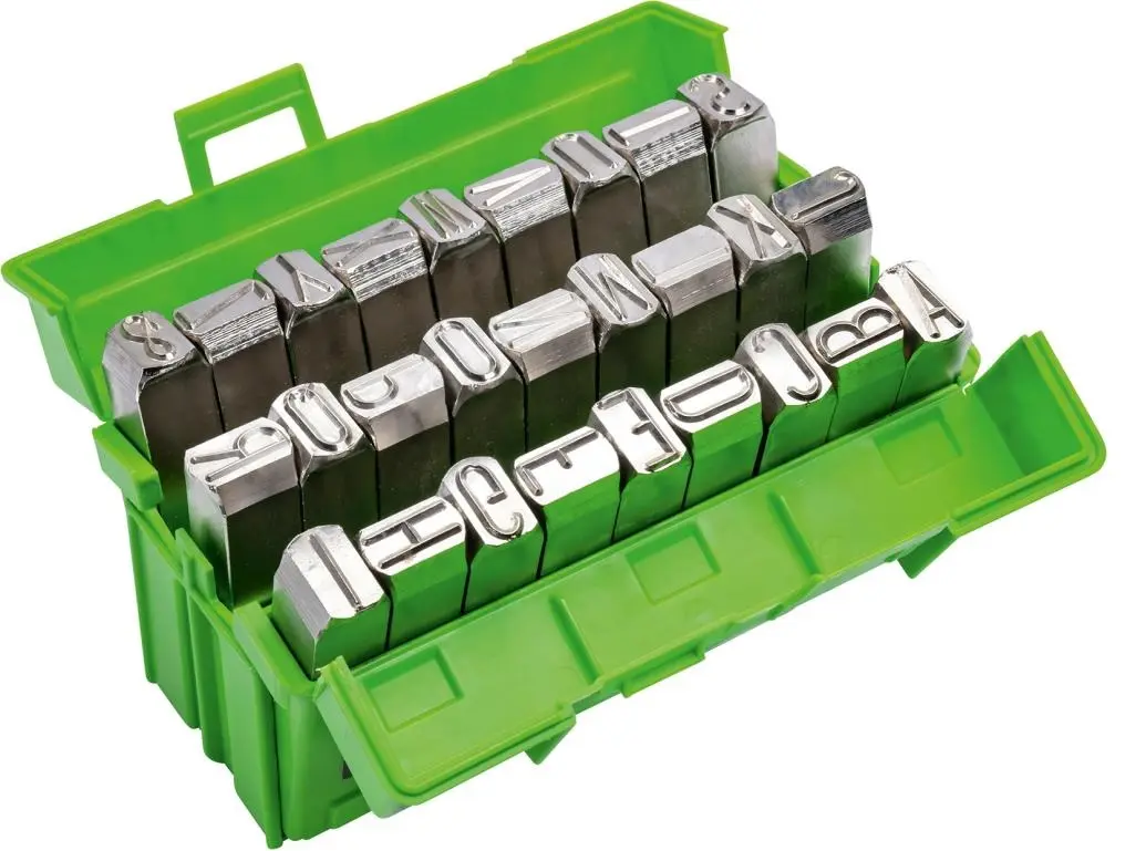 Prevedenie: 27díl. (A-Z - veľké písmená). Z kvalitnej nástrojovej ocele, druh písma podľa DIN 1451. Dodáva sa v sadách v plastovej dóze.