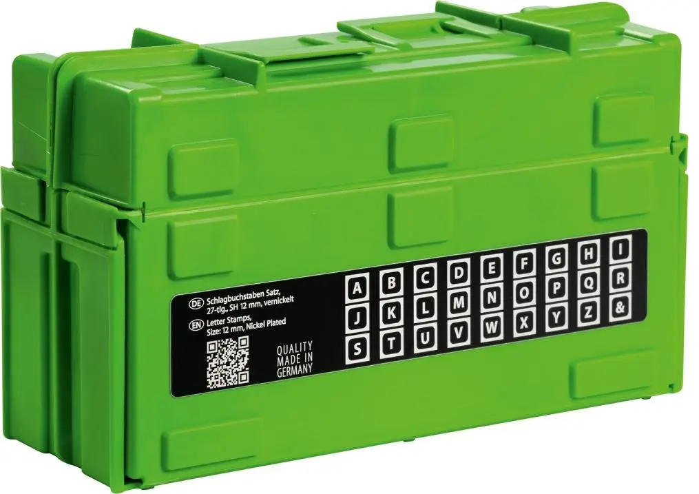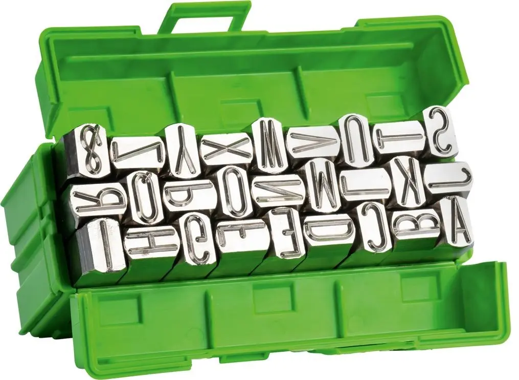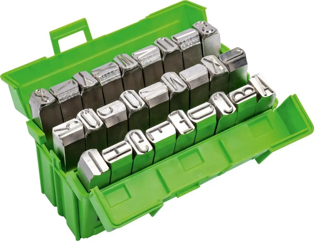 Prevedenie: 27díl. (A-Z - veľké písmená). Z kvalitnej nástrojovej ocele, druh písma podľa DIN 1451. Dodáva sa v sadách v plastovej dóze.