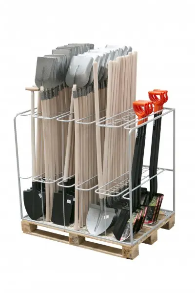 Stojan je vhodný pre rôzne typy lopat a rýľov, čo z neho robí univerzálne riešenie pre obchody so širokou škálou
