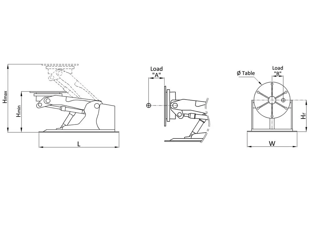 Rotačný polohovadla s hydraulickým zdvíhaním a naklápaním stola, plynuloumotorickú reguláciou otáčok pre rotáciu upevnených súčasťou vo vertikálnejaj v horizontálnej polohe, sú vhodné pre zvýšenie rýchlosti a efektivity počasautomatického i manuálneho zváranie. Táto polohovadlá - zváracie stoly hrajú dôležitú úlohu v oceliarskych konštrukčnýchdielňach s minimalizáciou prevádzky žeriavu.