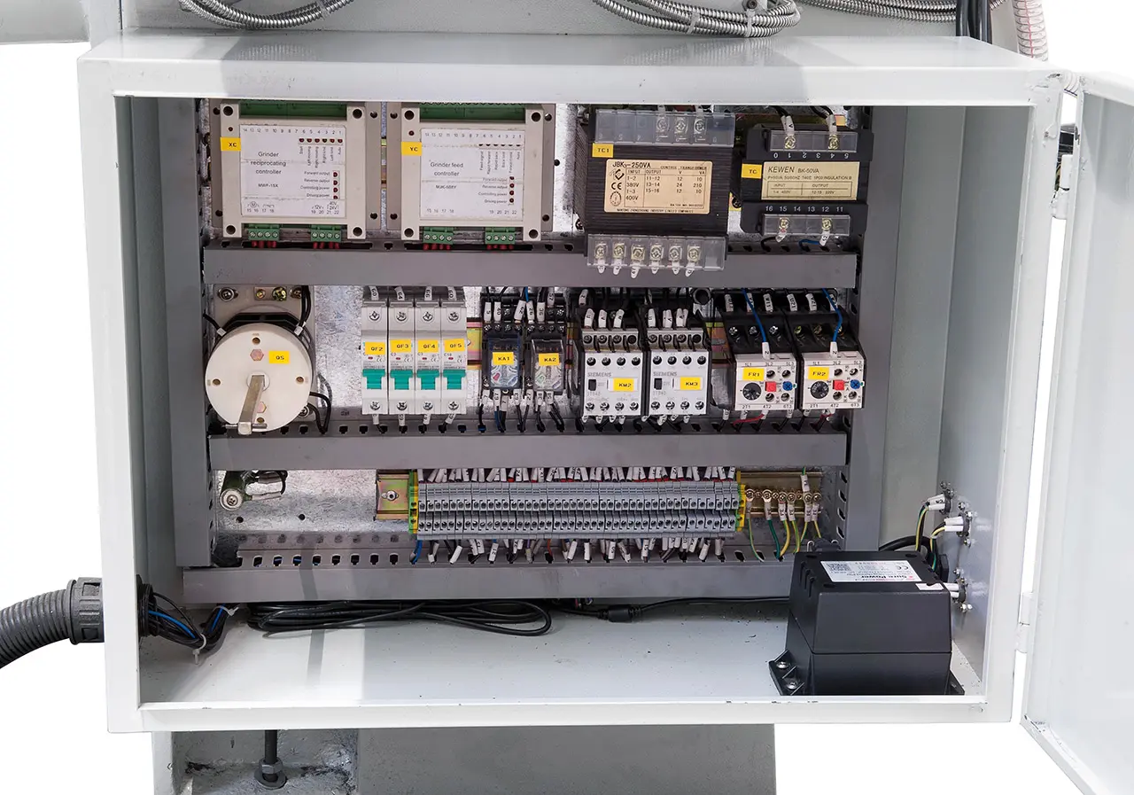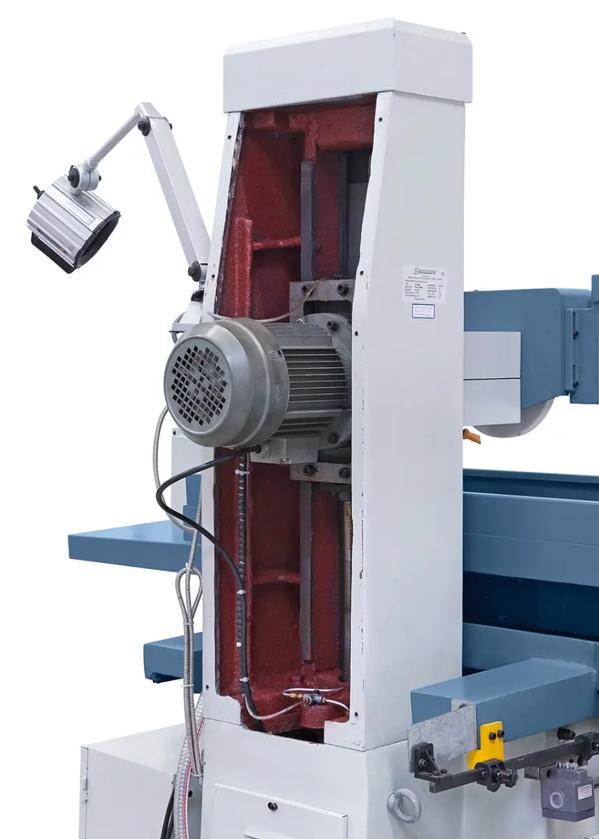motor vretena 1,5 kW, otáčky 2800 U.min-1, pracovný stôl 210 x 500 mm, permanentný magnet 200 x 400 mm, posuv - pozdĺžny/priečny 530/220 mm, brúsny kotúč 200 x 20 mm, strojný posuv v osiach X a Y, rozmery 1250 x 1400 x 1730 mm