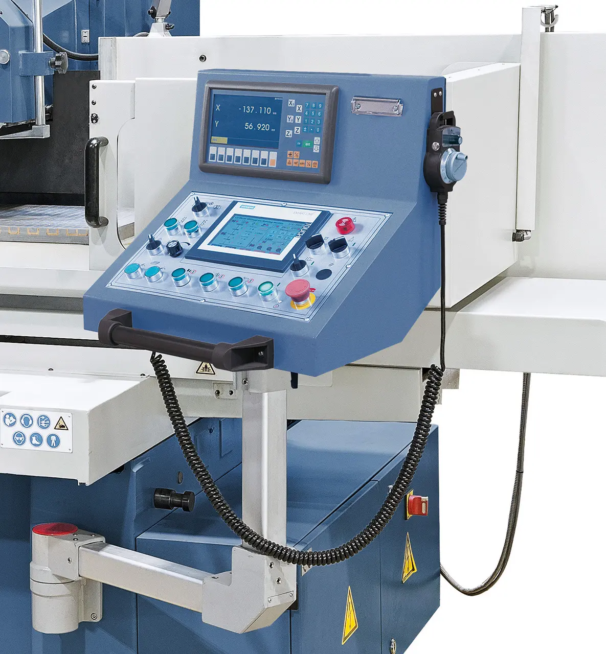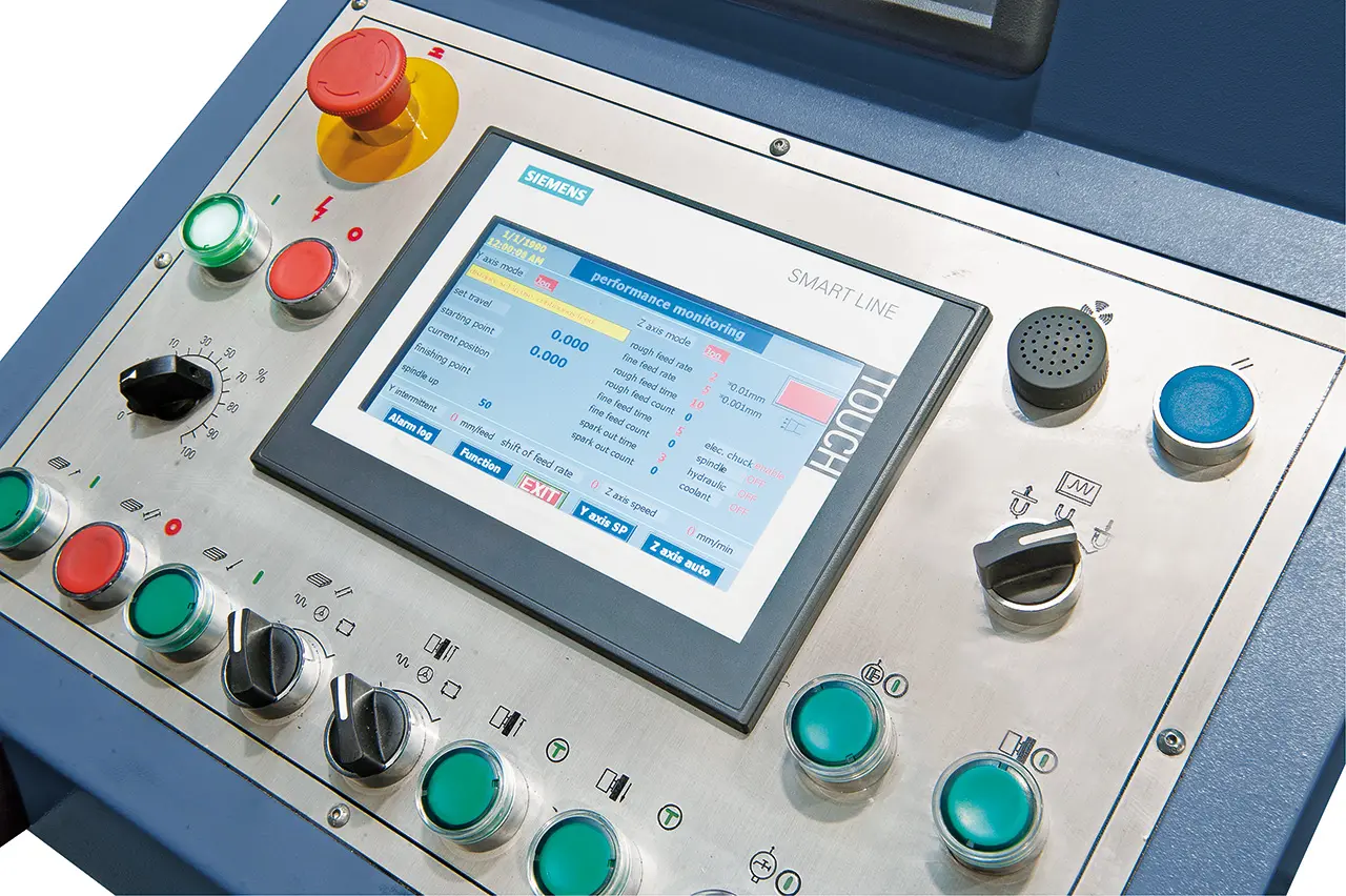 Počítačom riadené pozicovanie s rýchloposuvom na výšku obrobku, nastaviteľné zdvihy brúsenie a vyjiskření, automatické zdvihnutie do východiskovej polohy po ukončení programu