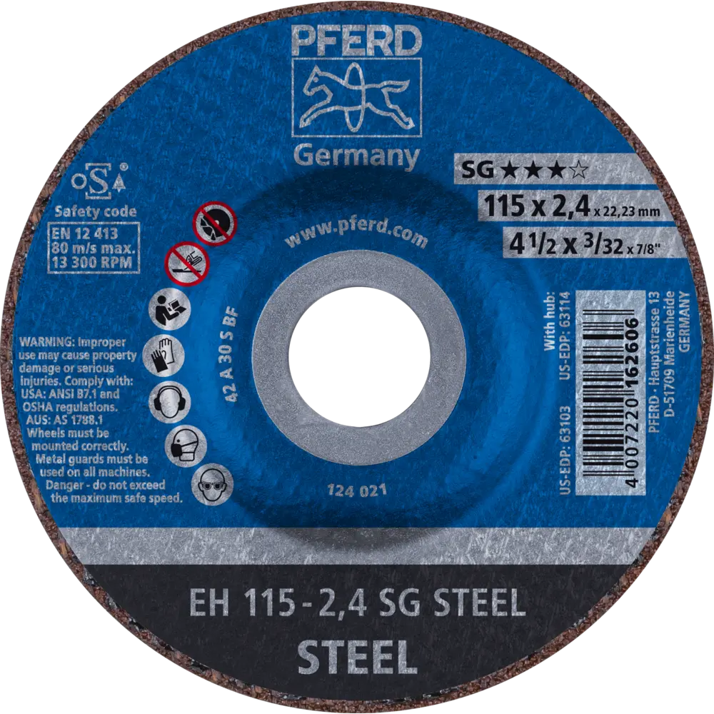 Technické údaje kotouče PFERD 115 x 2,4 x 22,23 mm. Ocel.