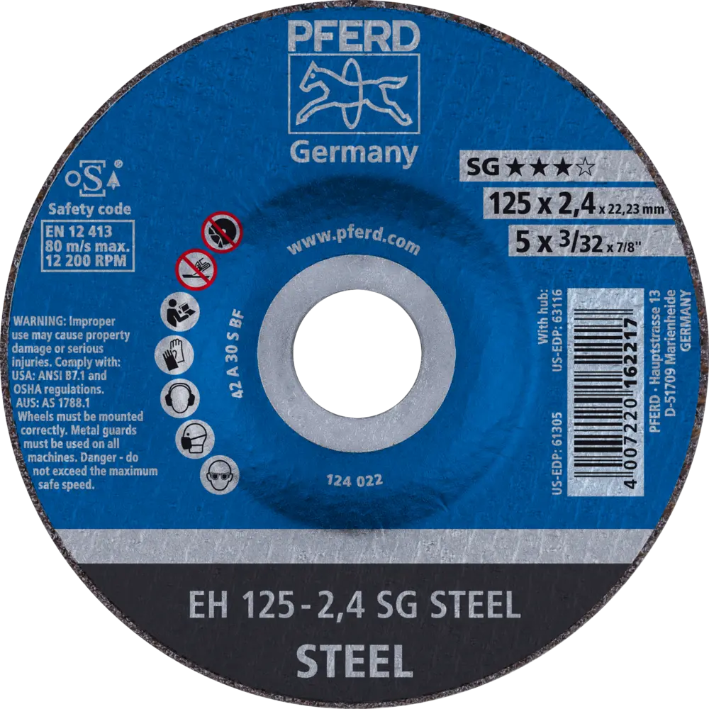 Technické údaje kotouče PFERD 125 x 2,4 x 22,23 mm. Ocel.