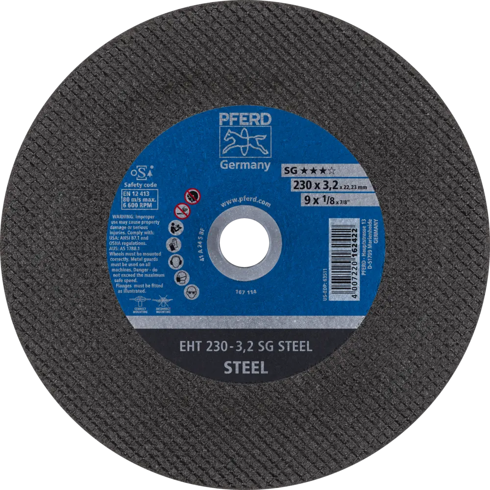 Technické údaje kotouče PFERD 230 x 3,2 x 22,23 mm. Ocel.