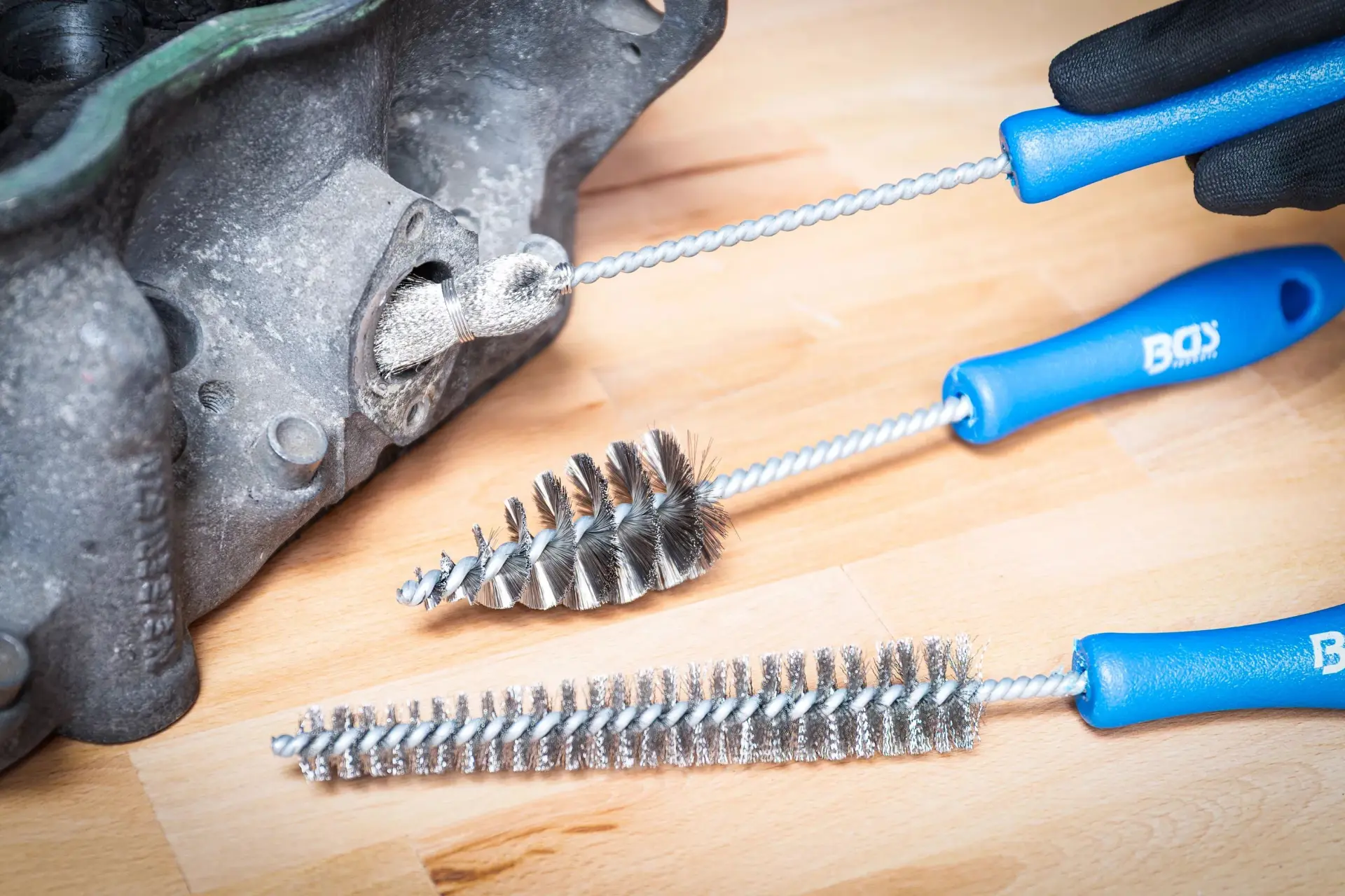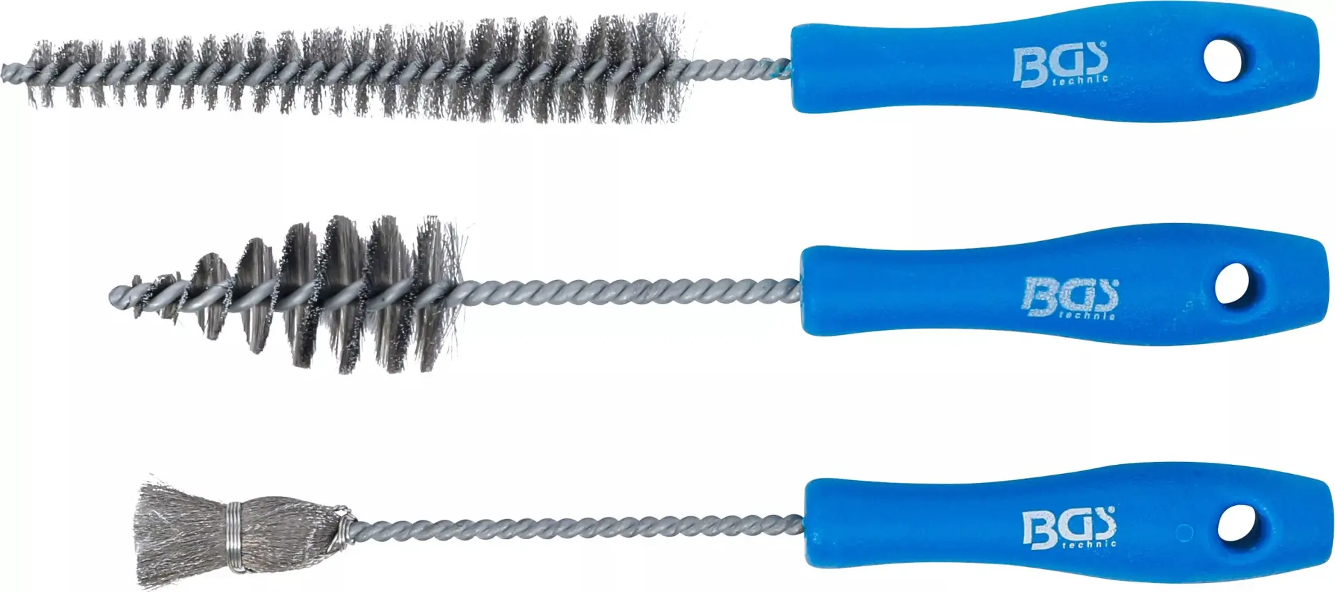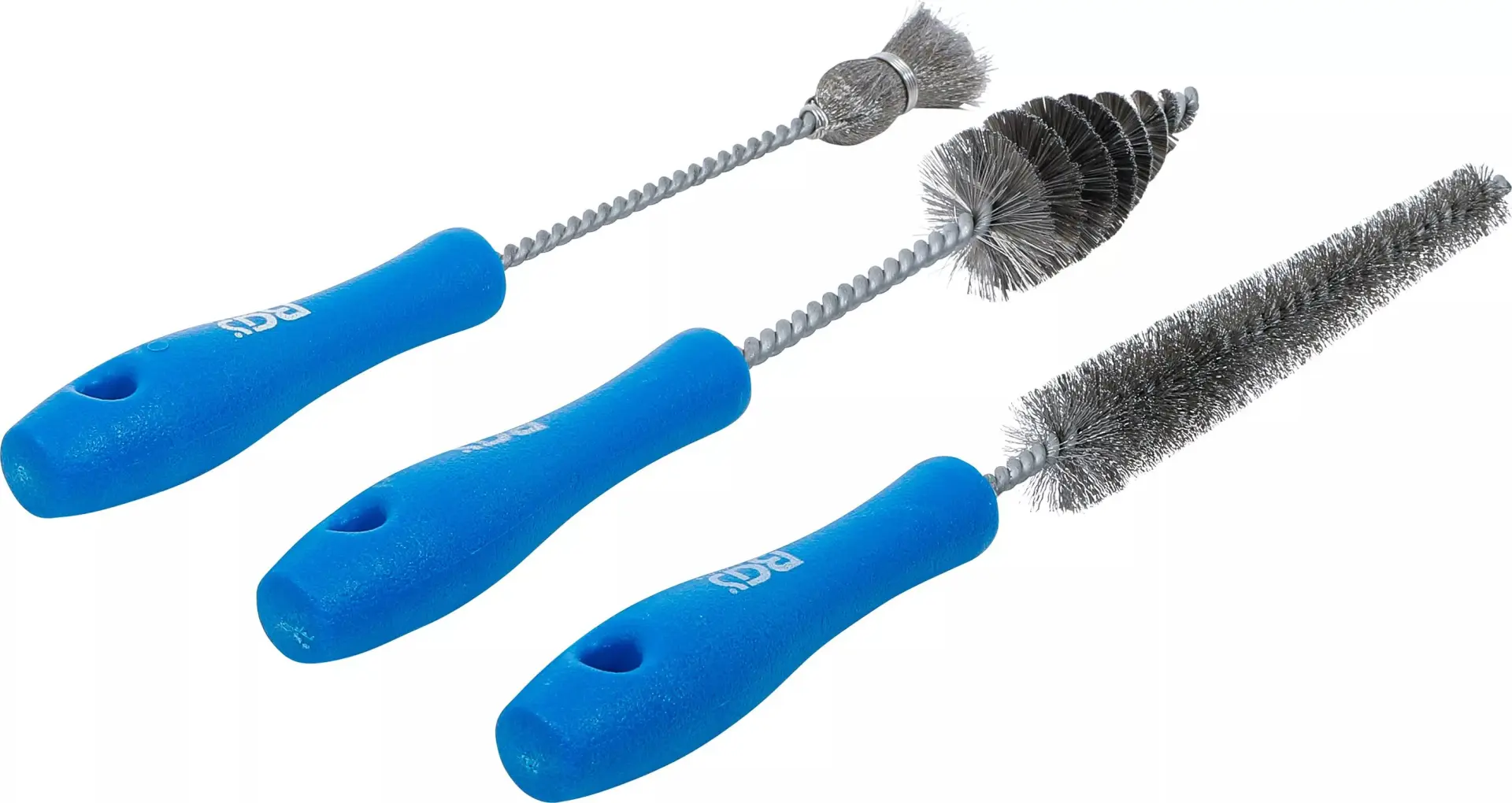 Sada tří ručních kartáčů BGS1074575 je určena pro čištění dieselových vstřikovačů, nabízí různé velikosti pro efektivní odstranění usazenin a nečistot. Ergonomické rukojeti usnadňují manipulaci při údržbě motorových dílů.