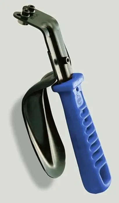 Škrabák pro oboustranné srážení hran plechu.Rukojeť je opatřena ochranou ruky. Kulaté nože mají dlouhou životnost, jelikož se dají otáčet a obracet (jsou oboustranně broušené). Pro odh