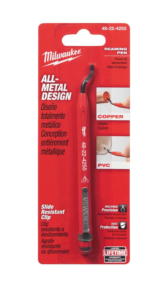 Odhrotovací nástroj Milwaukee MI48224255 je určen pro rychlé odstranění otřepů z kovových i plastových trubek, má ergonomickou rukojeť a odolnou konstrukci. Vhodný pro průměry 3–38 mm, usnadňuje práci při instalacích i údržbě.