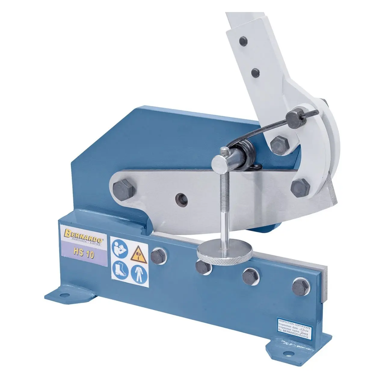Pákové nůžky Bernardo HS 10 umožňují ruční stříhání plechu do tloušťky 4 mm a kruhové oceli do průměru 13 mm. Pracovní délka činí 255 mm, hmotnost 23 kg.