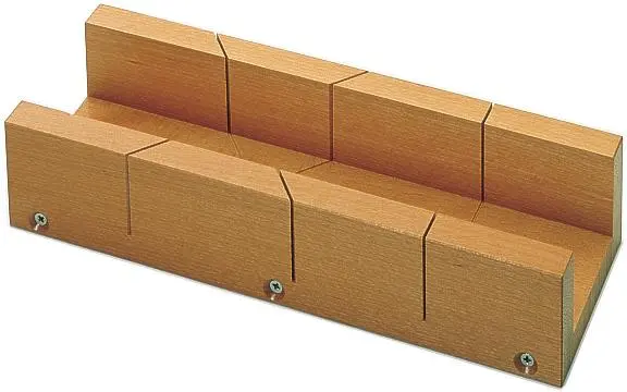Prevedenie: Z dreva temného červeného buka, jemne lakovaného. S dvoma pokosovými rezy 45° as jedným uhlovým rezom 90°.