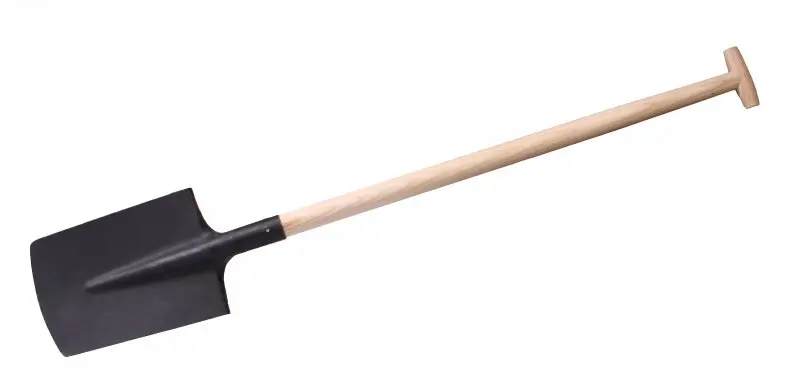 Čierna lopatka s okrúhlou rukoväťou T na efektívnu prácu v záhrade