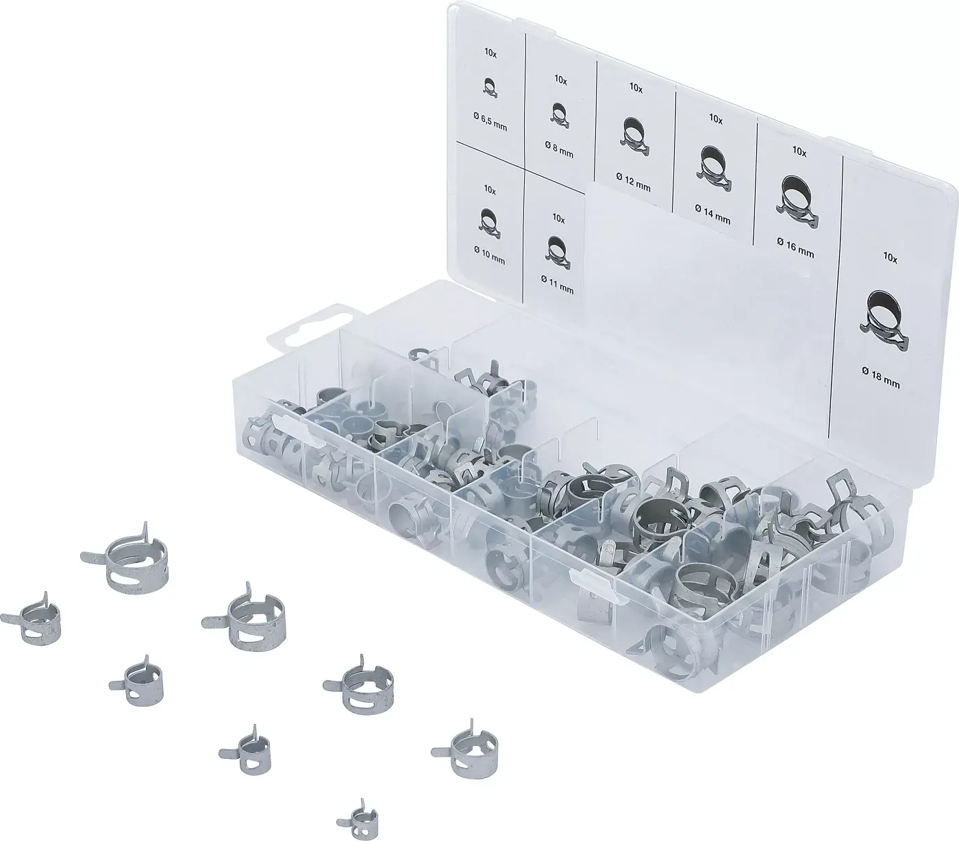 Sada hadicových spon z pružinové pásové oceli 80dílná (BGS109475) je vhodná pro každého, kdo potřebuje mít po ruce různé velikosti spon pro rychlé a efektivní upevnění hadic. Díky rozmanitosti velikostí a odolnému materiálu je možné sadu využít v mnoha situacích, kde je potřeba spolehlivé spojení hadicových systémů.