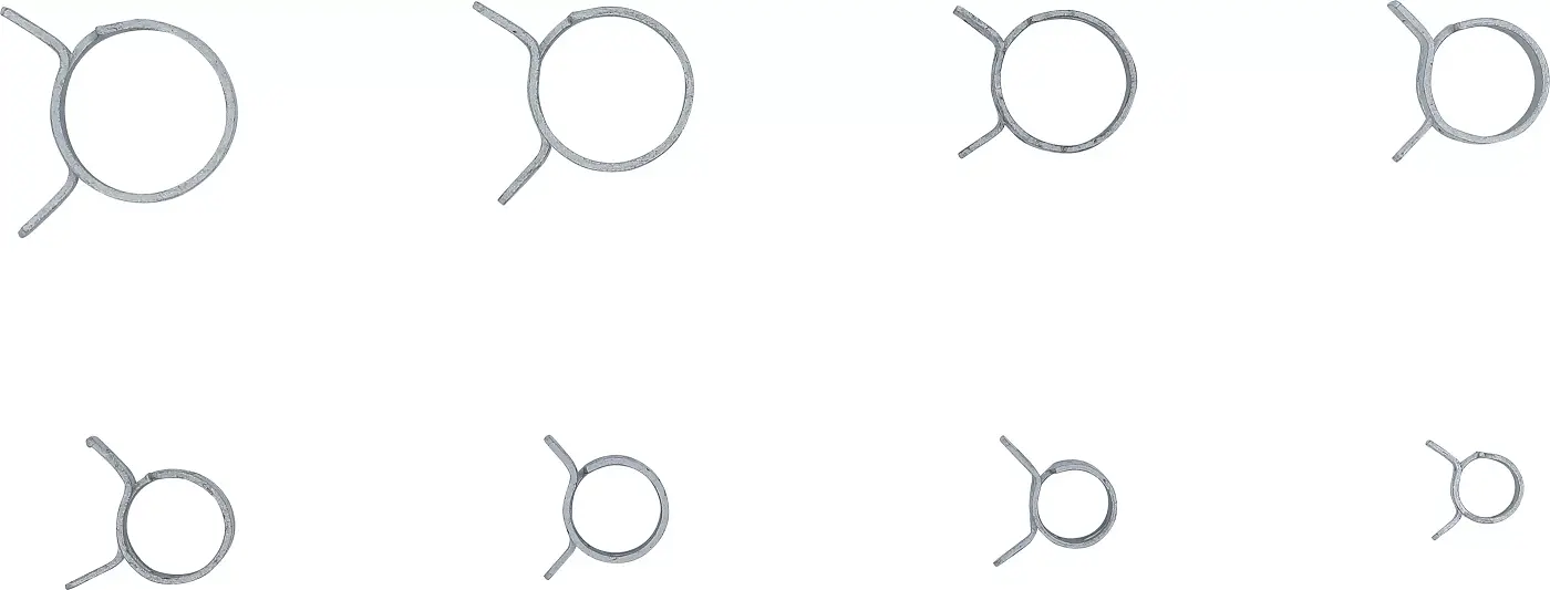 V balení najdete spony v různých velikostech, což umožňuje jejich využití pro široké spektrum průměrů hadic. Díky tomu je sada univerzální a pokrývá většinu běžných potřeb při opravách nebo údržbě. Každá spona je navržena tak, aby zajistila pevné a stabilní uchycení bez rizika sklouznutí nebo uvolnění.