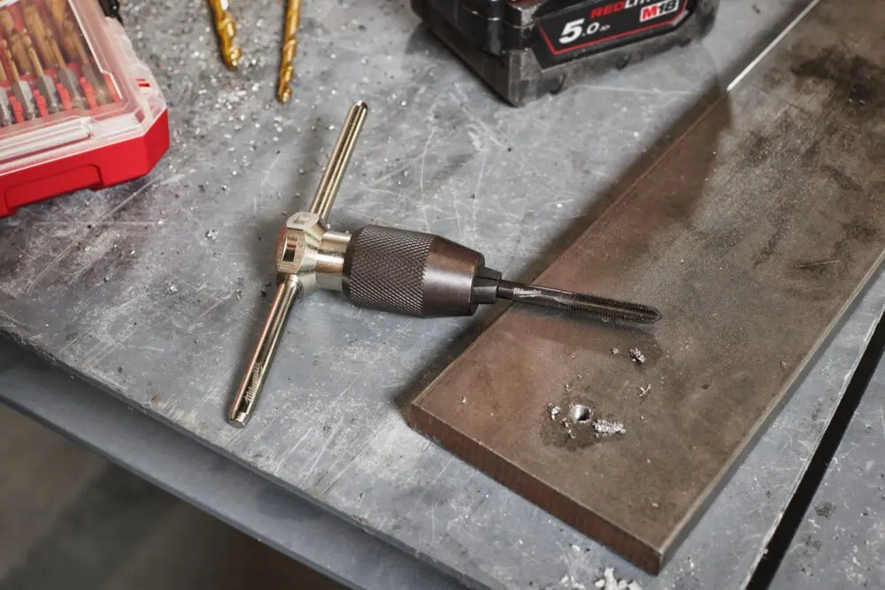 Obsahuje presne spracované príslušenstvo na závitovanie a rukoväte pre najbežnejšie aplikácie