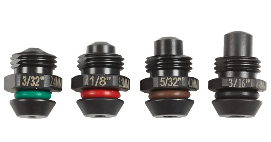 Súčasťou sú štyri priechodky, ktoré umožňujú prácu s rôznymi priemermi nitov. Vďaka tomu je možné náradie ľahko prispôsobiť špecifickým požiadavkám projektu bez nutnosti dokupovať ďalšie príslušenstvo.