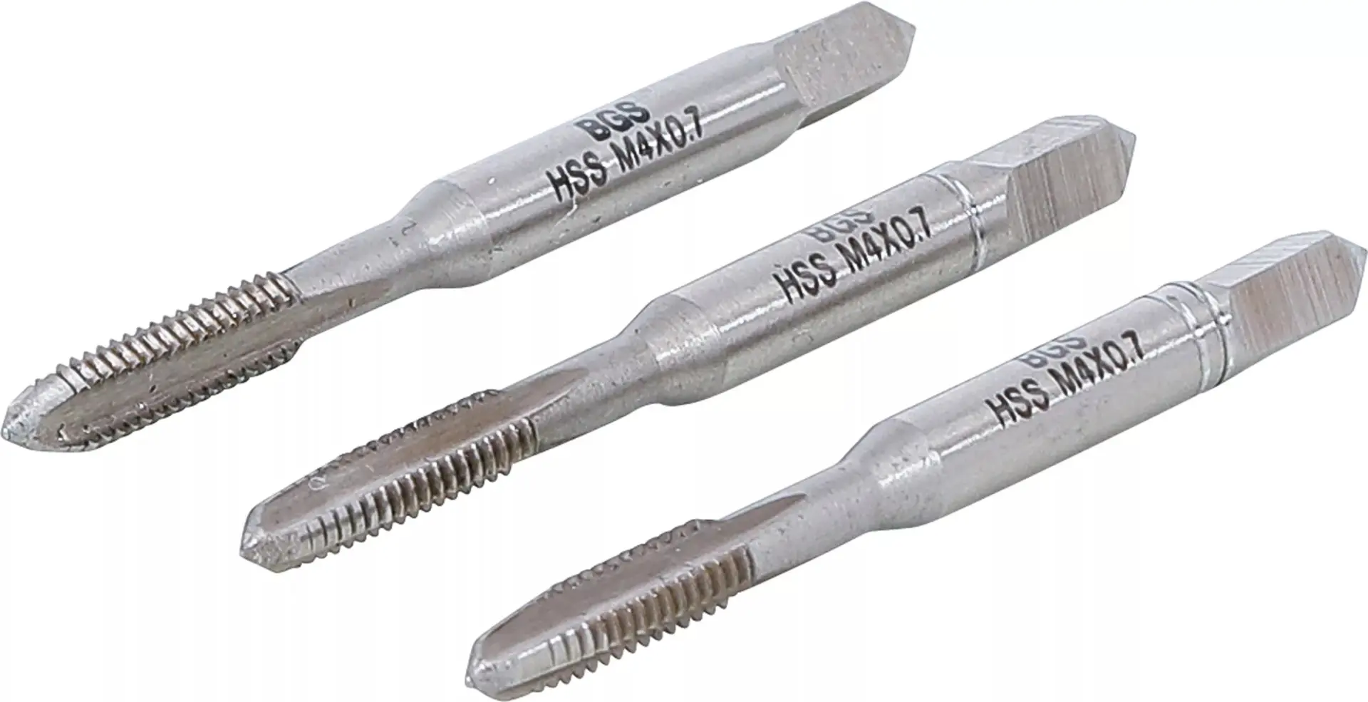Sadový závitník M4 x 0,7 mm BGS100931 HSS-G je určen pro přesné řezání metrických závitů do kovu, vyrobený z rychlořezné oceli pro dlouhou životnost. Vhodný pro ruční i strojní použití, splňuje normu DIN 371.