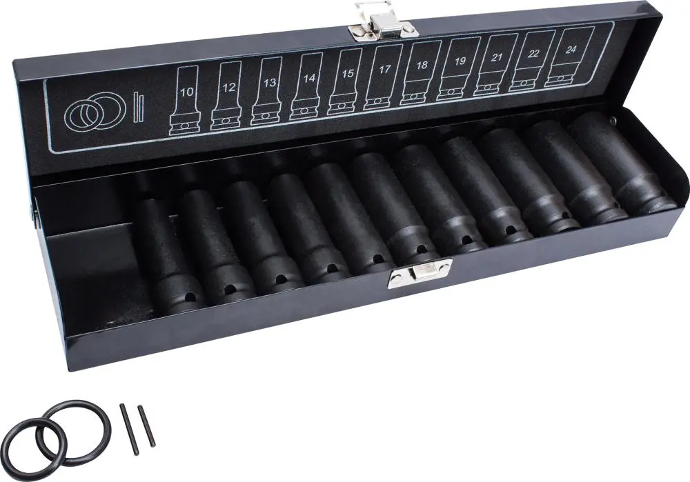 11 nástrčkových kľúčov, 6hran 10; 12; 13; 14; 15; 17; 18; 19; 21; 22; 24 mm
