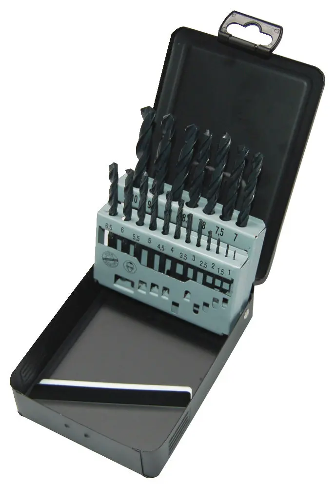 Sada 19 vrtáků Milwaukee HSS-R o průměrech 1–10 mm je vyrobena z rychlořezné oceli podle normy DIN 338 a dodávána v praktické kazetě. Vrtáky jsou válcované, vhodné pro přesné vrtání do kovu v domácí dílně i profesionálním provozu.