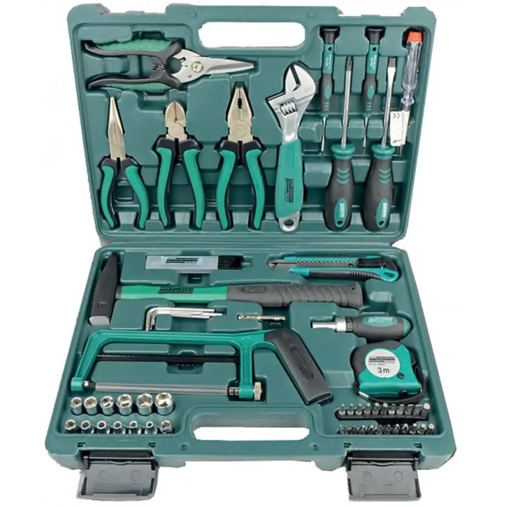 Komplexná univerzálna sada náradia nemeckého výrobcu BRÜDER MANNESMANN. Sada obsahuje 74 dielov: staviteľný kľúč 200 mm, nástrčné bity 25 mm (T-profil, inbus, plochý bit, PH a PZ), sadu zahnutých šesťhranných kľúčov, sadu klieští a základných skrutkovačov, zvinovací meter, pílku a kladivko. V plastovom kufri.