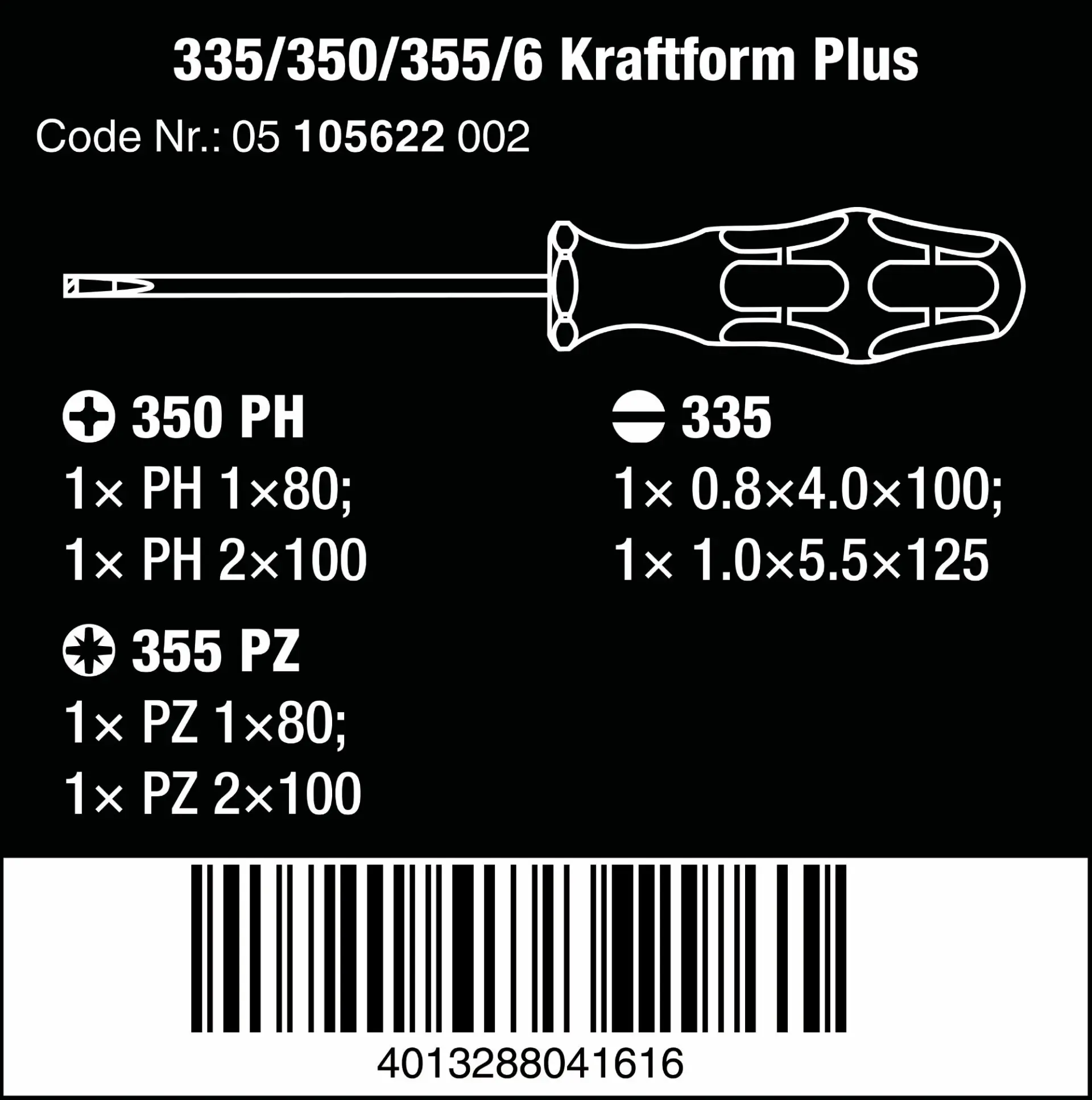 Wera 105622 Skrutkovače Kraftform Plus Lasertip rad 300 typ 335/350/355/6 (Sada 6 dielov + stojanček) (W05105622001)