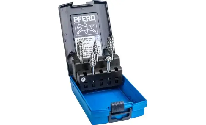Súprava 1412 ALLROUND obsahuje päť fréz z karbidu volfrámu pre všestranné použitie na kľúčové materiály, ako je oceľ a liata oceľ, nerezová oceľ (INOX), farebné kovy a liatina v najbežnejších tvaroch a rozmeroch