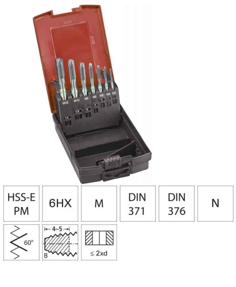 Strojné závitníky HSS-E UNI M3 ÷ M12 Format GT na priechodné otvory, SUPRA (Sada 7 dielov) (EDE16290001)